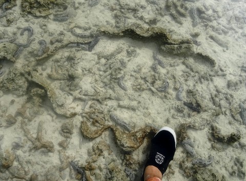 Je dois marcher car la marée est basse et il n'y a plus d'eau pour l'annexe .