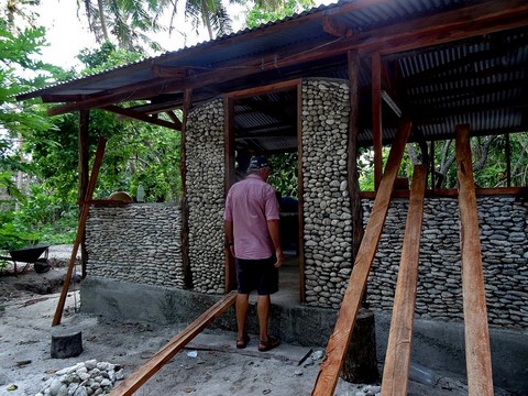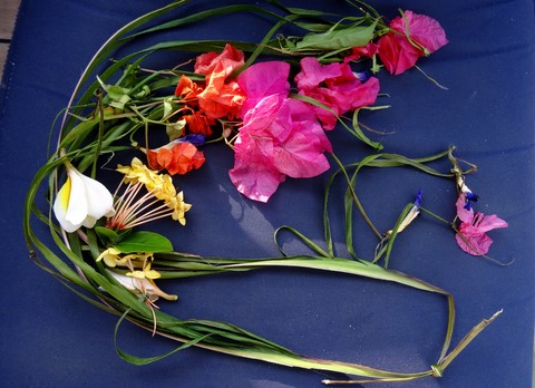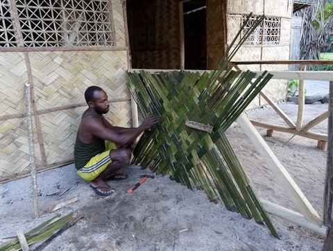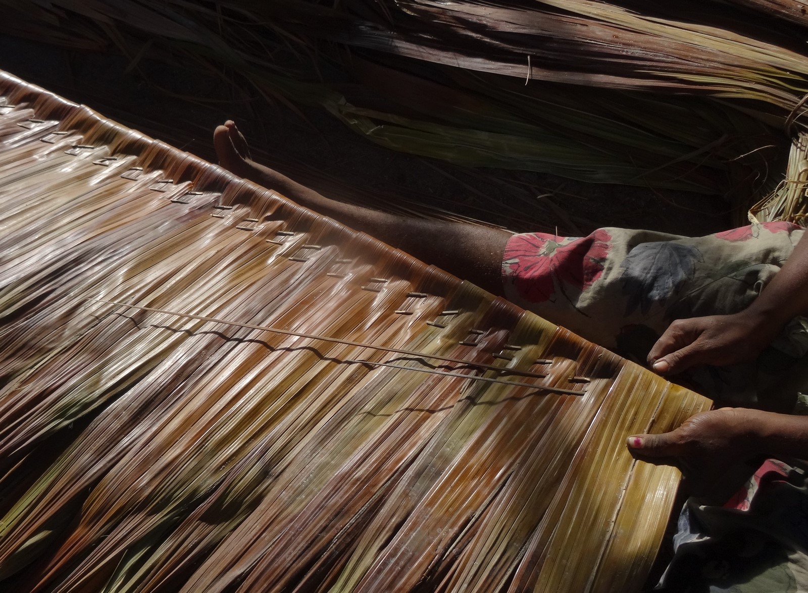Encore une nouvelle façon de " coudre " les feuilles pour faire les toits .