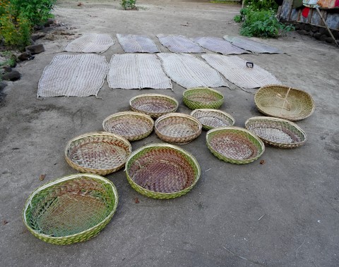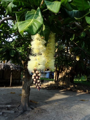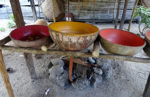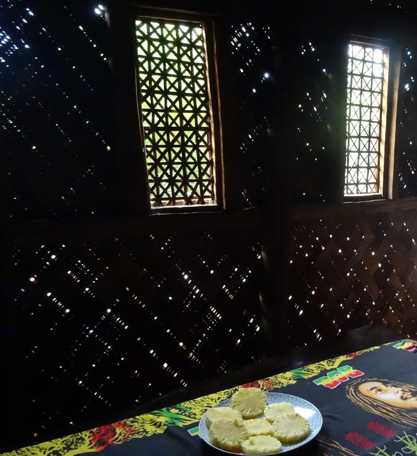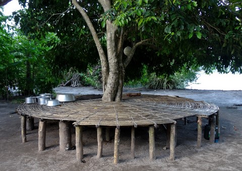 Le clou du village est cette table en bambou ronde , autour de l'arbre .