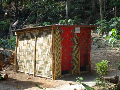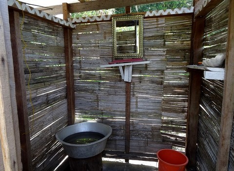 par contre la douche est tout à fait locale : une bassine et un sceau .