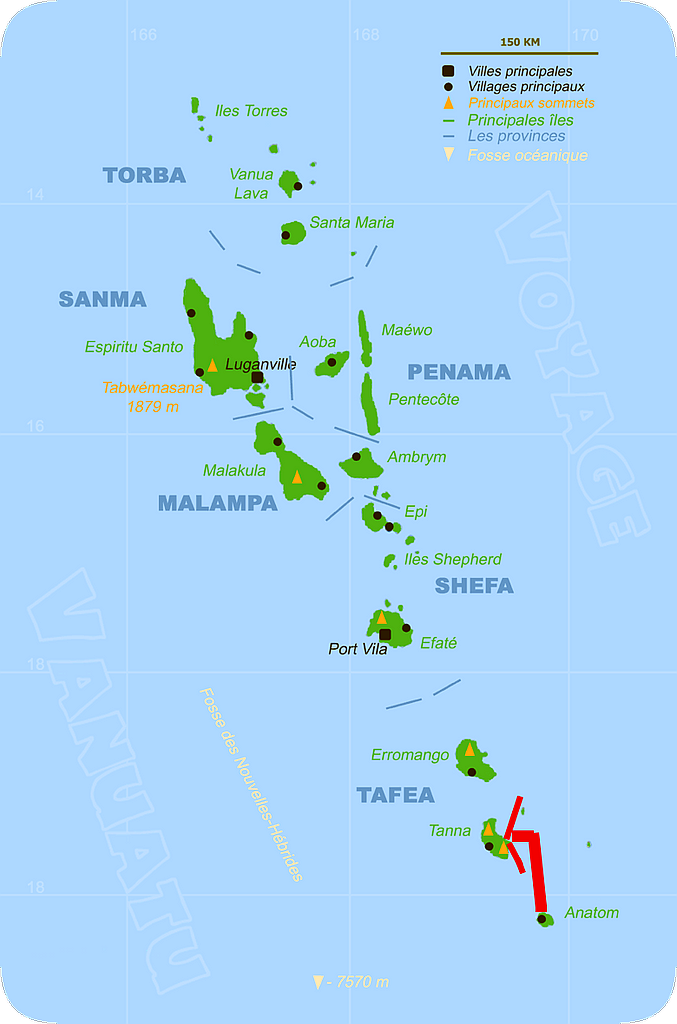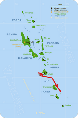 Nous partons pour Port Vila , la capitale des Vanuatu avec un arrêt à Erromango ..
