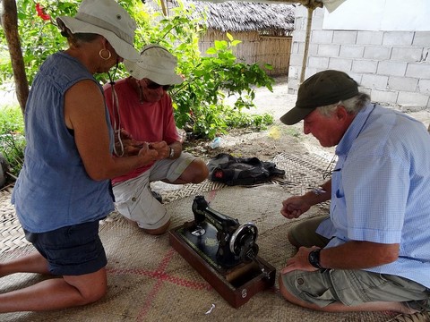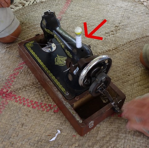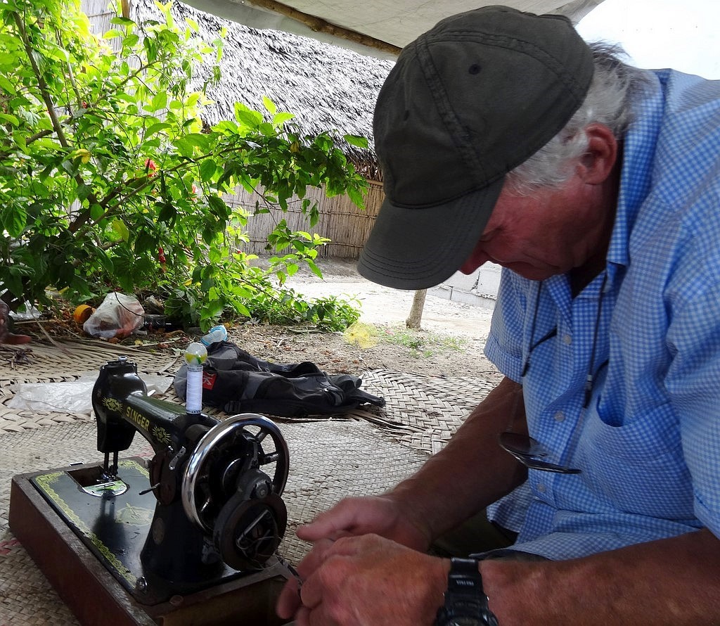 Puis le doudou est consulté pour examiner une machine à coudre qui a mal vécu le passage du cyclone Pam .