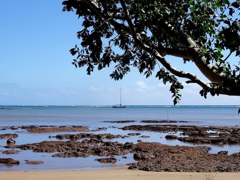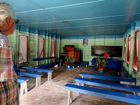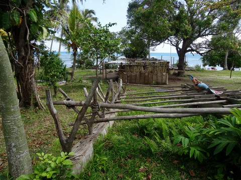 Après un paquebot qui est passé hier et a déversé tranquillement ces 1500 touristes sur Mystery Island avec un tour organisé de visite du village en une 1/2 H .