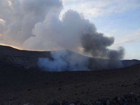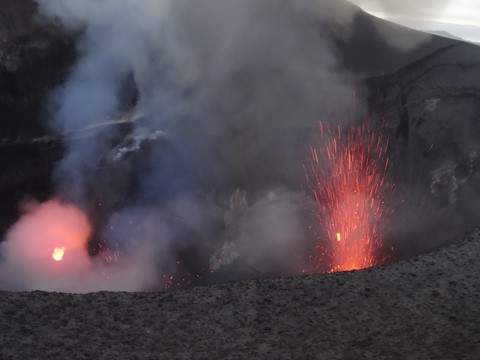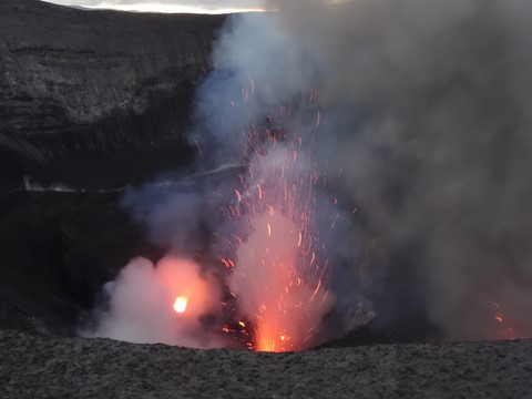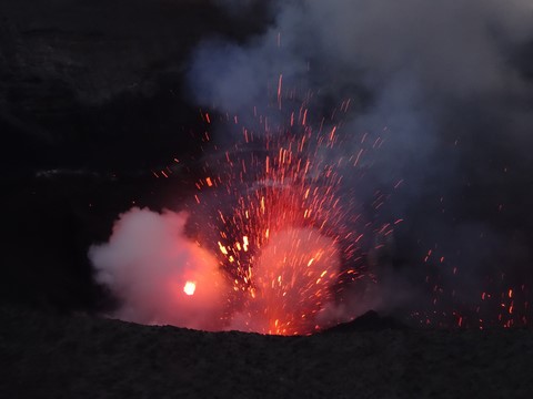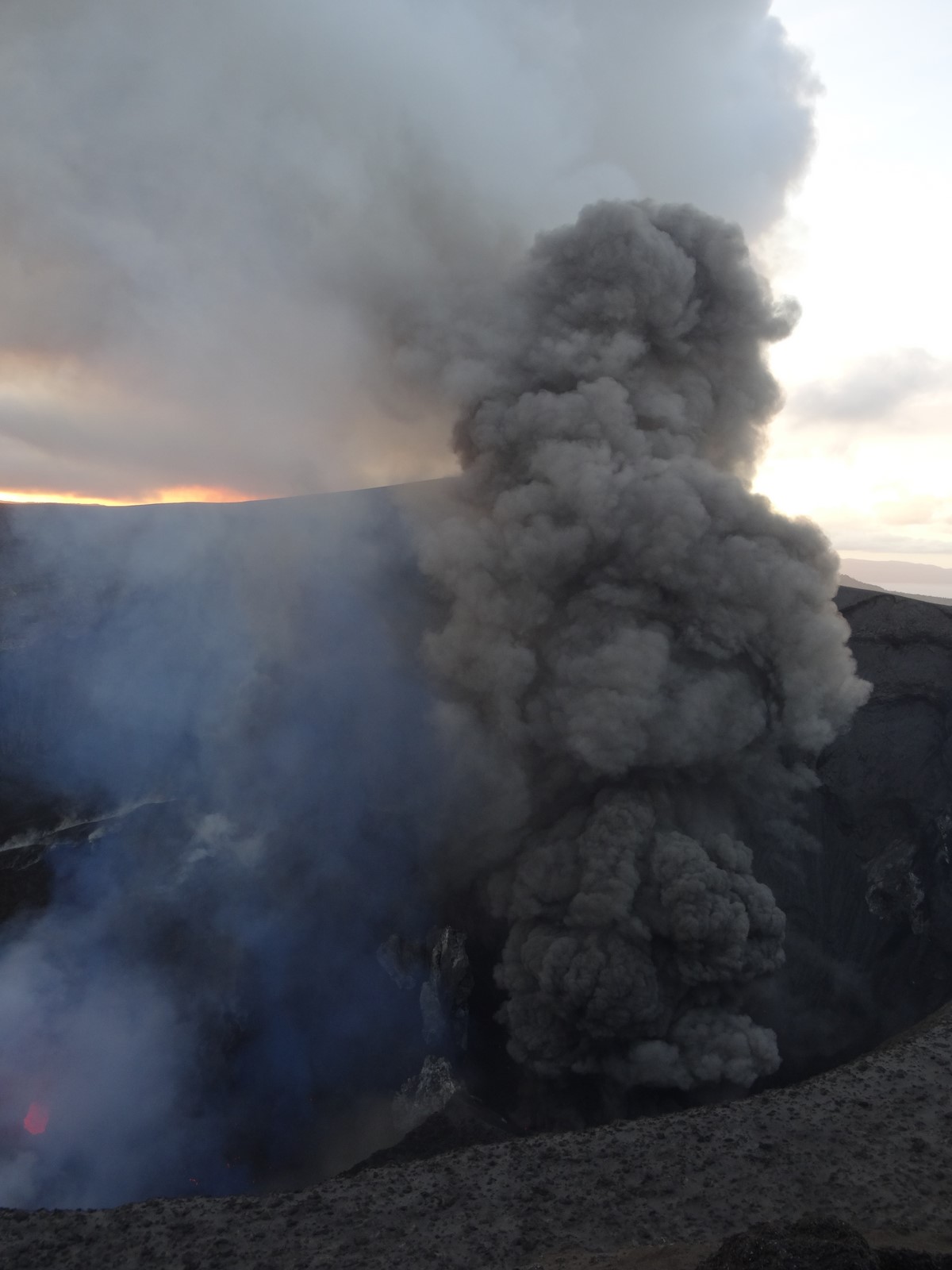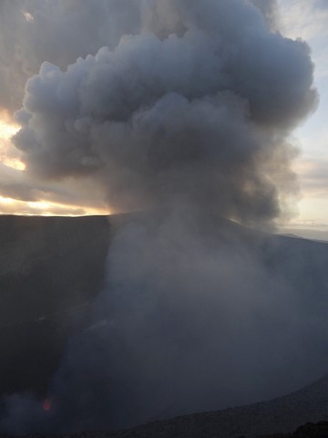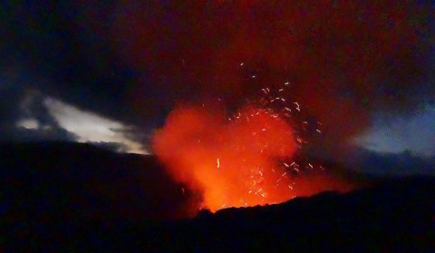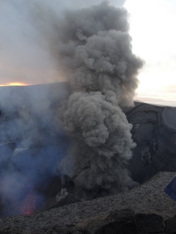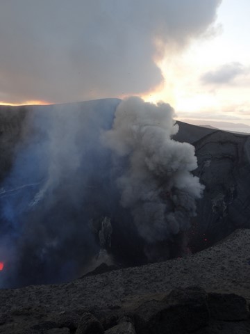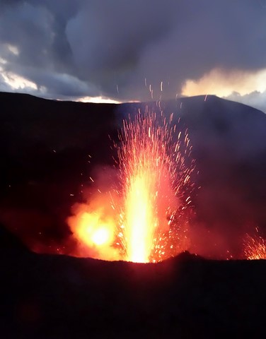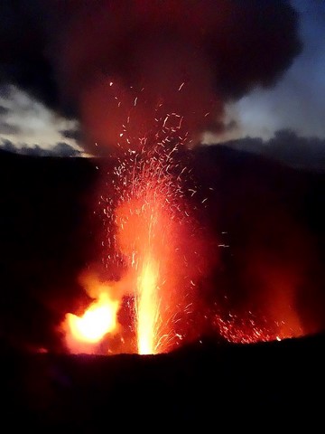 Puis c'est le grand jeu : des belles eruptions bien visibles dans le noir de la nuit tombante .