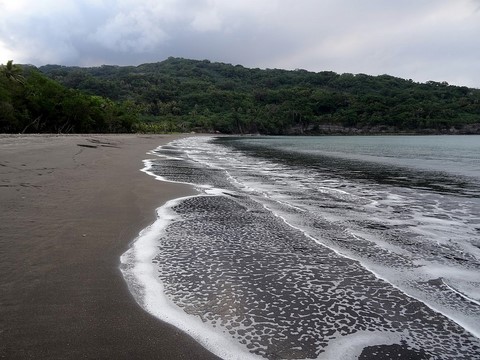 Une plage de sable noir , ce n'est pas étonnant avec l'activité volcanique des environs .