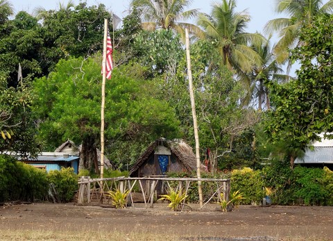 Il y a aussi ici le culte de John Frum nous a dit notre guide symbolisé par le drapeau américain .