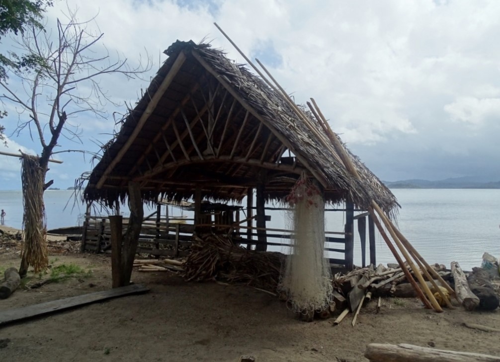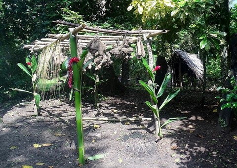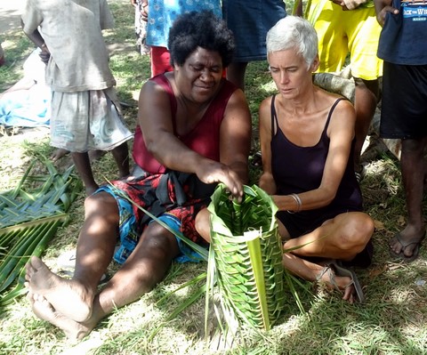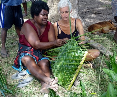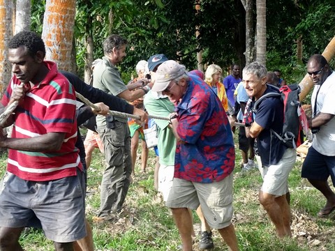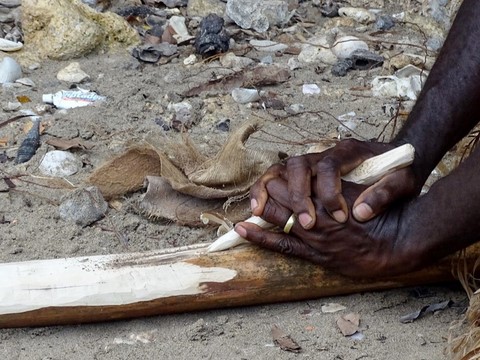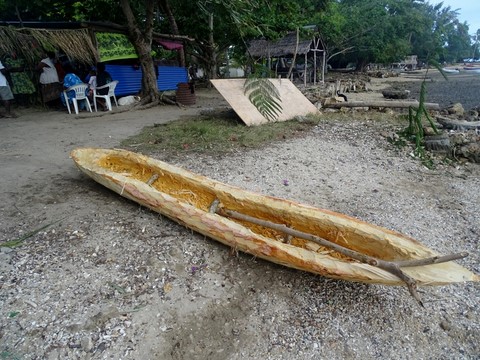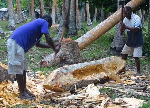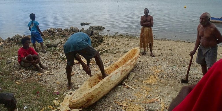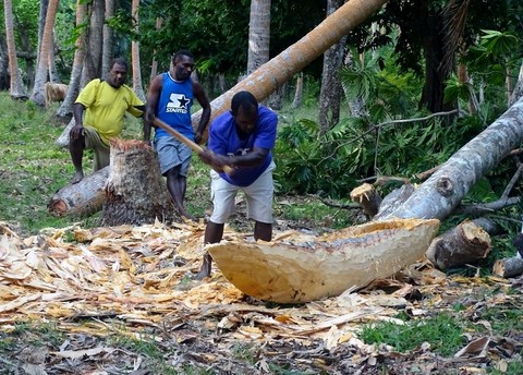 Puis ils nous emmenent en dehors du village pour nous montrer la fabrication d'une pirogue .