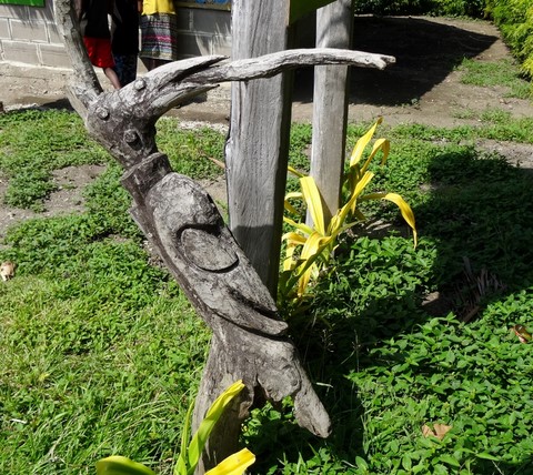 Après 2 bonnes heures , le morceau de l'arbre à pain commence à ressembler à une pirogue .
