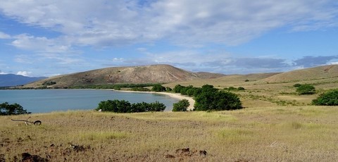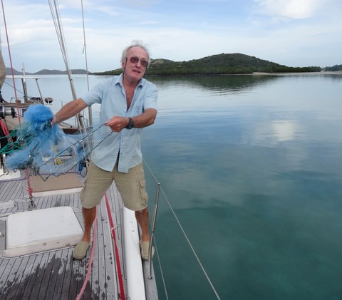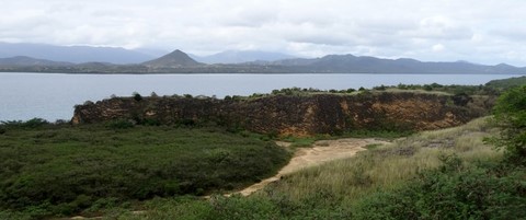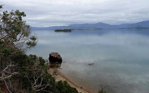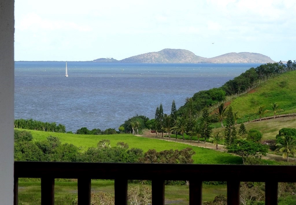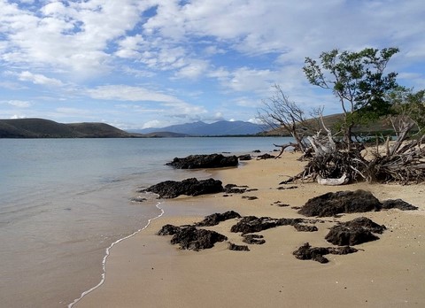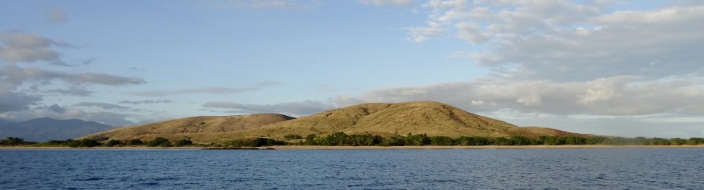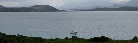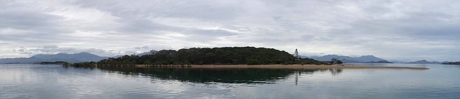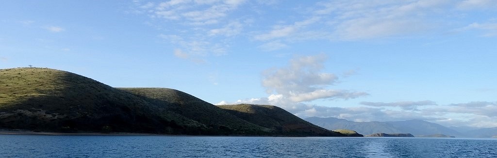 Nous allons jeter l'ancre un peu plus loin à coté d'une autre île très grande cette fois et pas très belle .