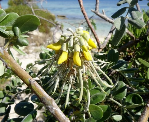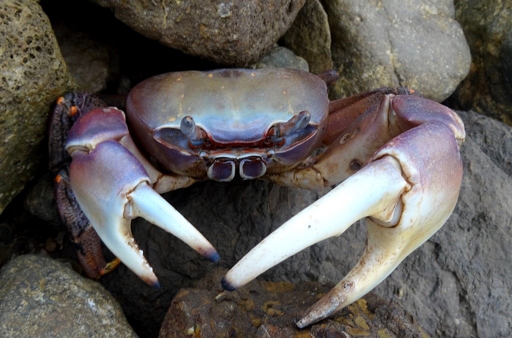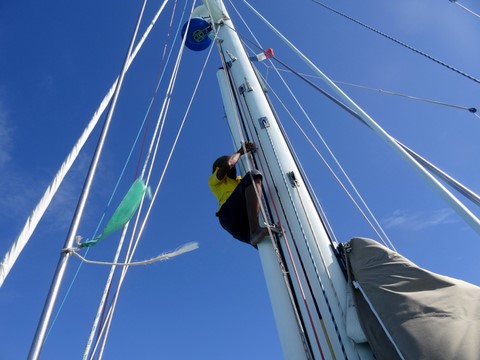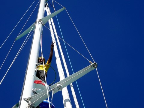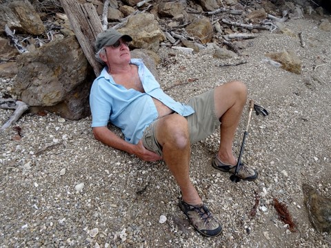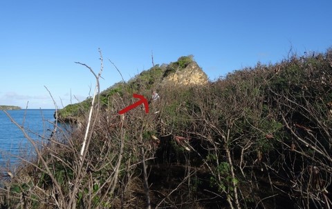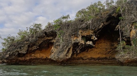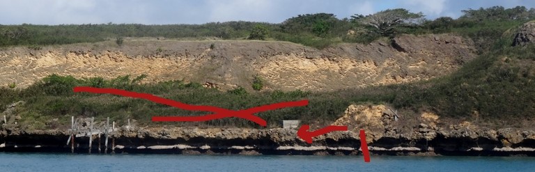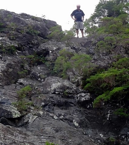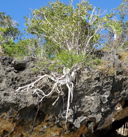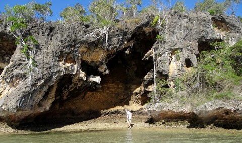 Escalade des rochers corraliens d'abord pendant que le doudou jette l'ancre de l'annexe .