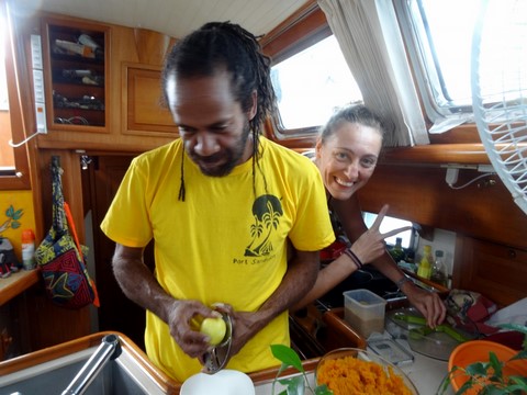 Arrivée à bord de Christina et Gugu .