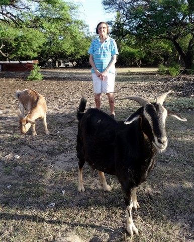 Elle vit au milieu de ses animaux : chèvres , poules , chiens et mème un cerf qui mange dans sa main