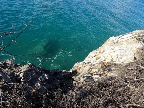 Balade autour de l'île car la mer a creusé des falaises partout dans cette roche friable .