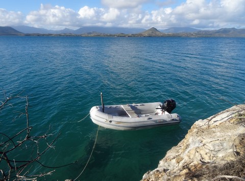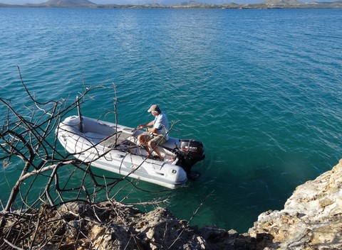 Nous repartons vers l'annexe pour trouver un autre endroit pour accoster .