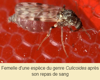 Culicoides (dont des espèces sont parfois aussi nommées mouches des sables ( sand flies en anglais ) est
