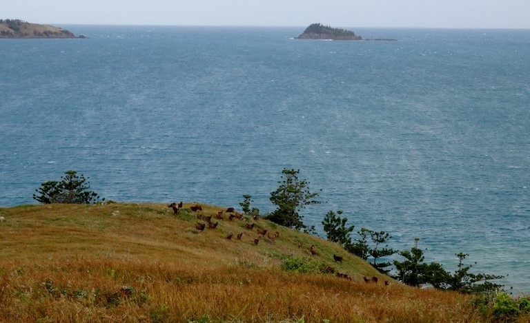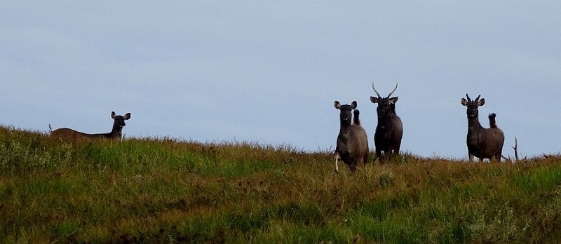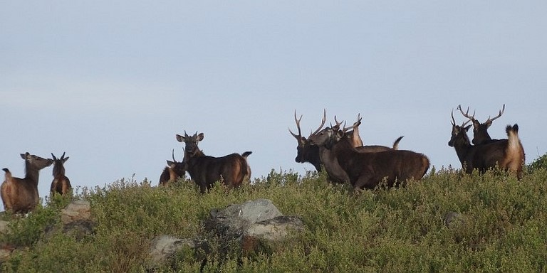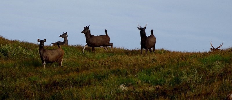 Arrivée sur une île avec des habitants très peureux : des cerfs et des biches .
