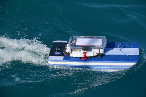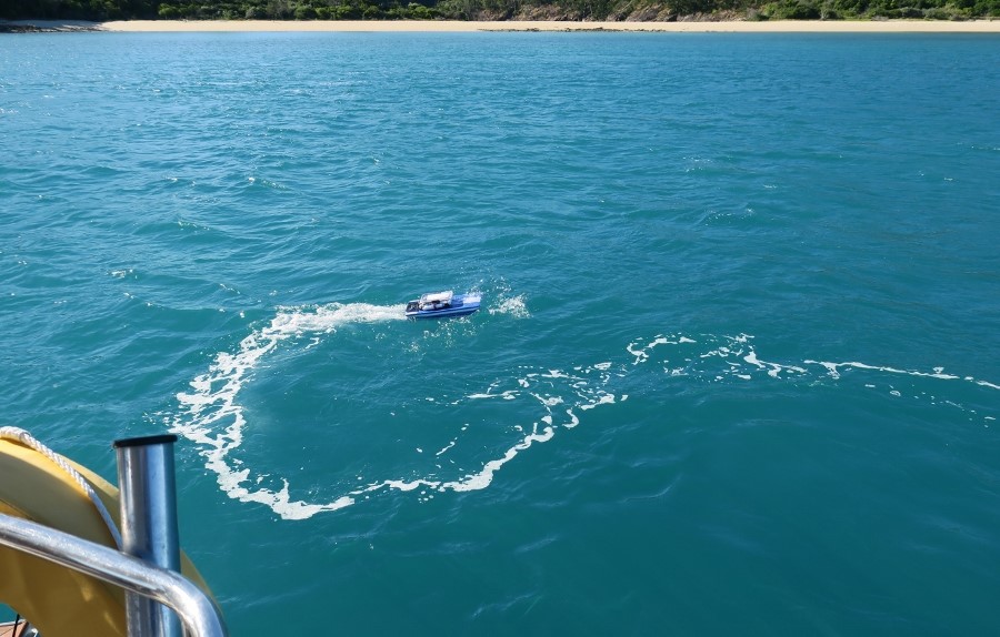 Avant de changer de mouillage , le doudou essaye son nouvel engin flottant .