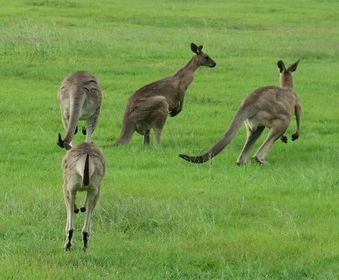 Nous avons vu des kangourous sauvages qui vivent tranquillement dans un parc à Burnett
