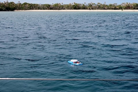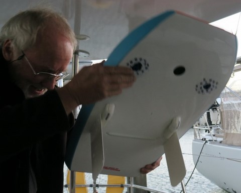 Cette après midi , nouvel essai de l'engin avec le sondeur installé sous la coque .
