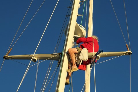 Ce n'est pas agréable du tout de monter au mât en mer surtout quand celle-ci est agitée .