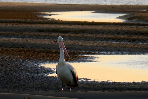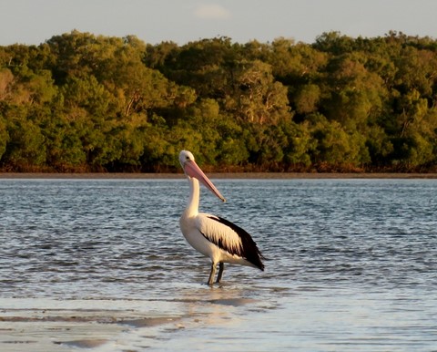 En attendant de le redescendre , je regarde un pélican qui me regarde aussi semble-t-il .