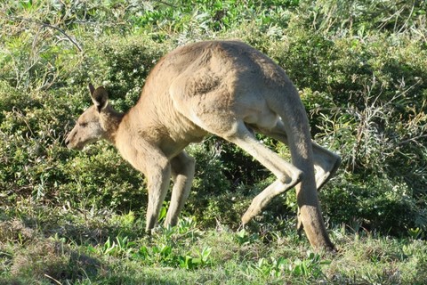 Nous avons vu et pu approcher un grand kangourou roux