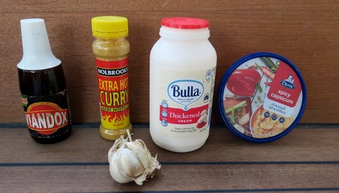 1 cuillère à soupe de viandox , 2 cuillères à soupe de crème , une cuillère à soupe de dip