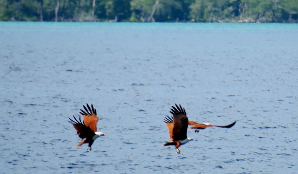Ce midi des rapaces sont venus nombreux dans la baie pour manger du poisson .