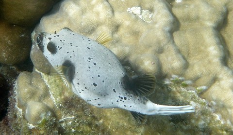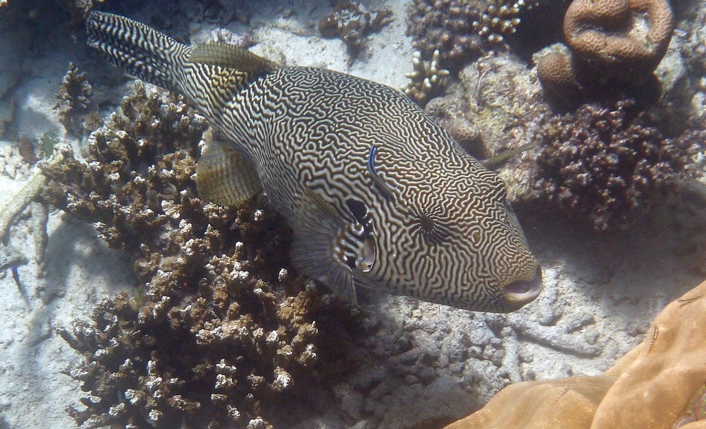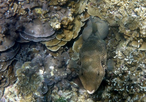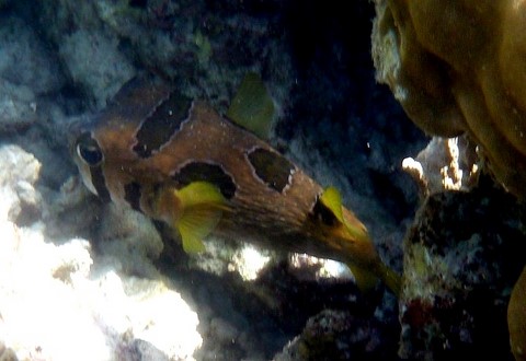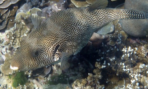 Un tétrodon lui a peur , il prend son habit de camouflage