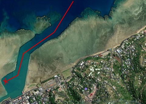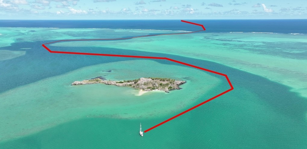 Notre route dans port Sud-Est Petite navigation en zig-zag pour arriver au mouillage .