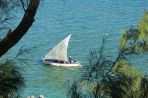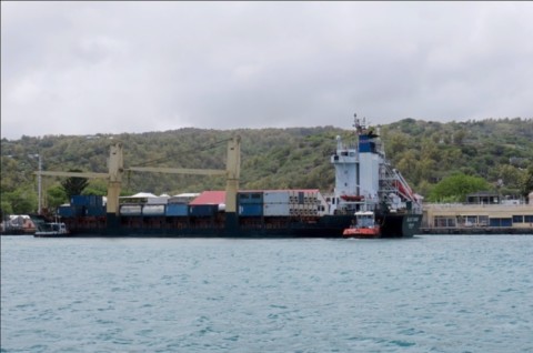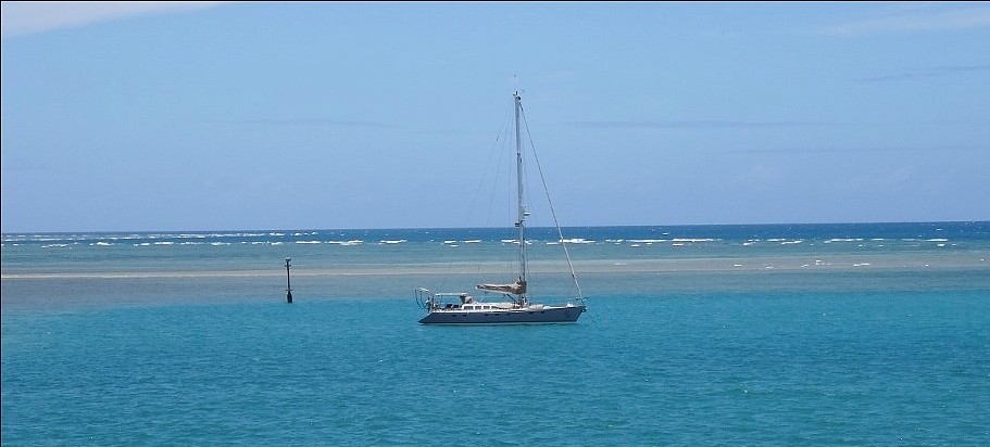Notre mouillage à Port Mathurin Ils ont creusé une chenal dans le corail pour permettre l'entrée des cargos .