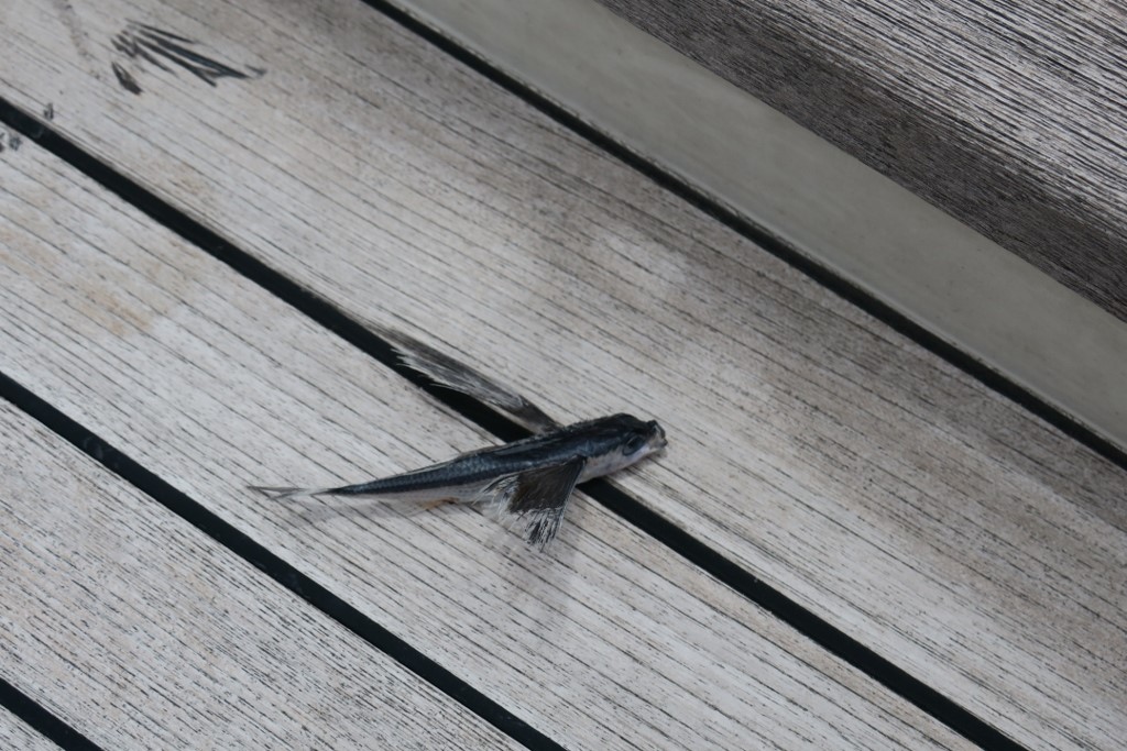 Le ramassage des poissons volants est à faire tous les jours voir 2 fois par jour Cela dépend de notre vitesse Plus nous allons vite plus ils sont nombreux à venir mourir sur le pont