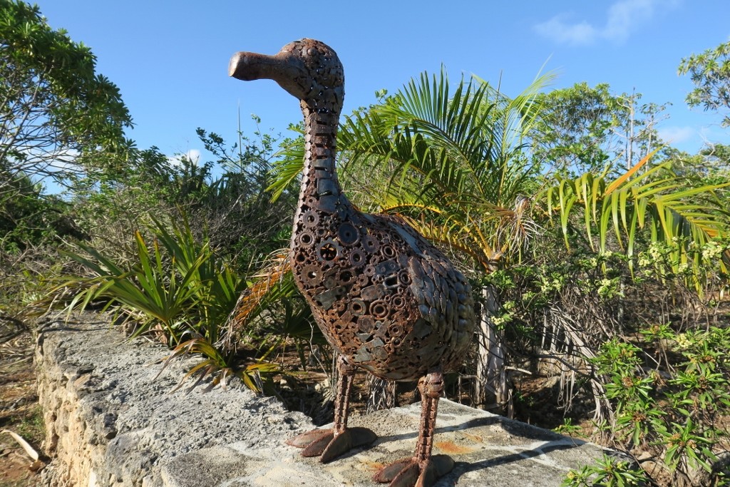 Fait avec des morceaux de ferraille , Le Dronte de Rodrigues ou Solitaire Il a disparu de l'île Ses ailes étaient atrophiées donc il ne volait pas Et il pondait un oeuf par an seulement et nichait au sol en plus Quelques omelettes faites par les marins de passage et voila plus de solitaire !