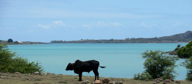 Au début de la balade juste après un virage je vois une photo à faire . Un taureau noir avec de grandes cornes sur fond de mer verte ! Je demande un arrêt ... Le conducteur refuse Je suis désolée pour ma photo ... Je maugrée pas mal Le conducteur prétend que je l'ai prévenu trop tard !