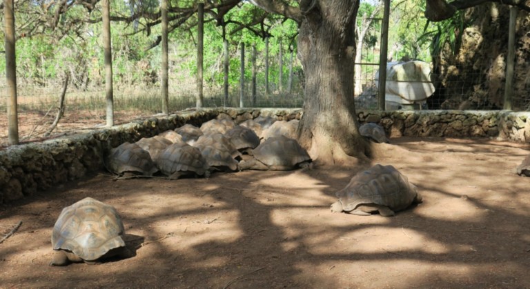 Visite très intéressante de la réserve de tortues François Leguat , le huguenot . Les grosses tortues endémiques de Rodrigues ont disparues Dans cette réserve ils élévent des tortues malgaches
