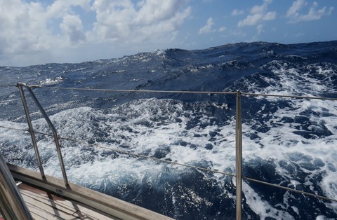 Le vent et le courant nous ont été favorables une grosse partie de la traversée Par contre la houle était très courte et les vagues bien puissantes