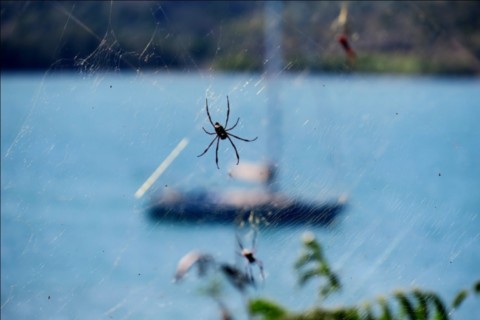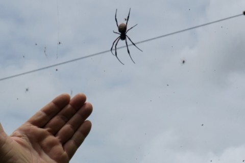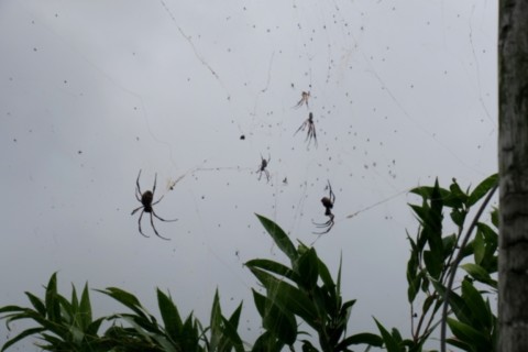 Presque tout le long de la route , des araignées géantes qui ne piquent mais mordent Arachnophobe cette île n'est pas pour vous !