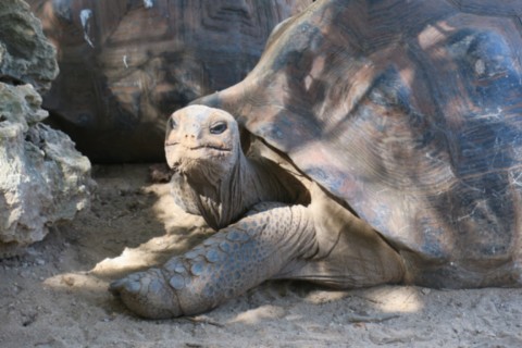 Une dernière tortue qui se dresse sur ses pattes pour se ventiler