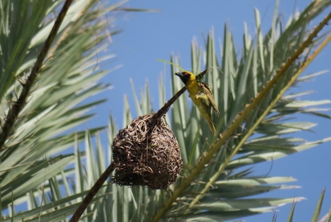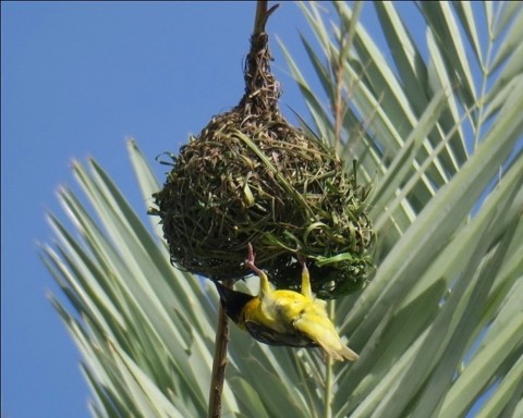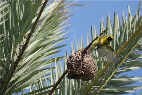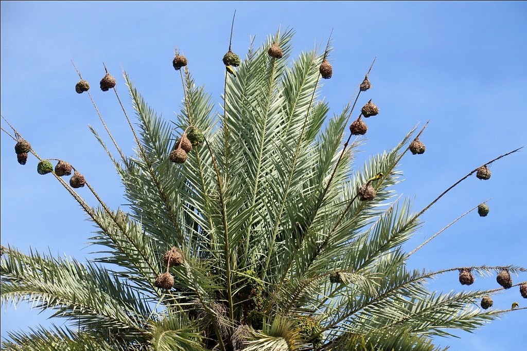 Ils se servent des palmes à l'extrémité pour faire leur nid et pour les accrocher