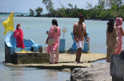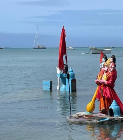 Le temple hindou et les statues sont les pieds dans l'eau ... Ils doivent avoir l'habitude