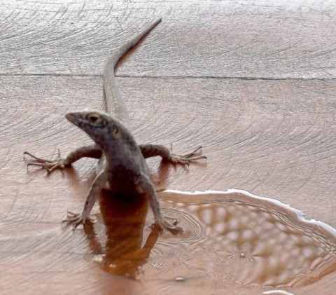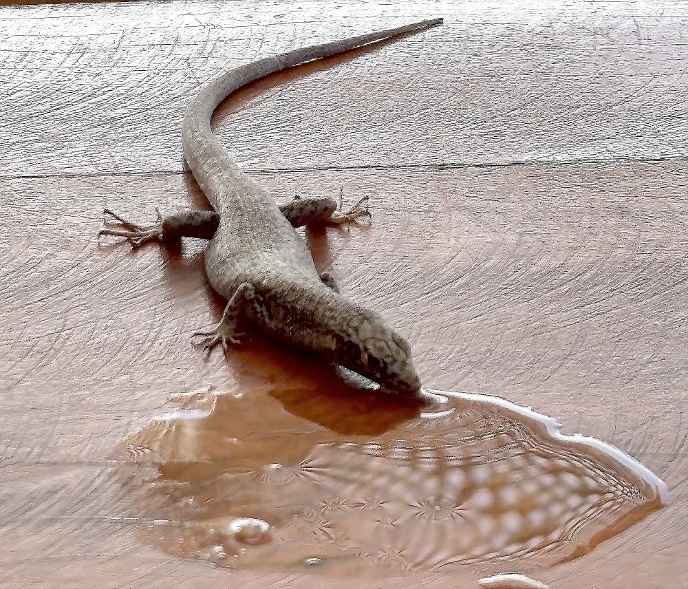 Par contre un lézard sur la table qui vient boire