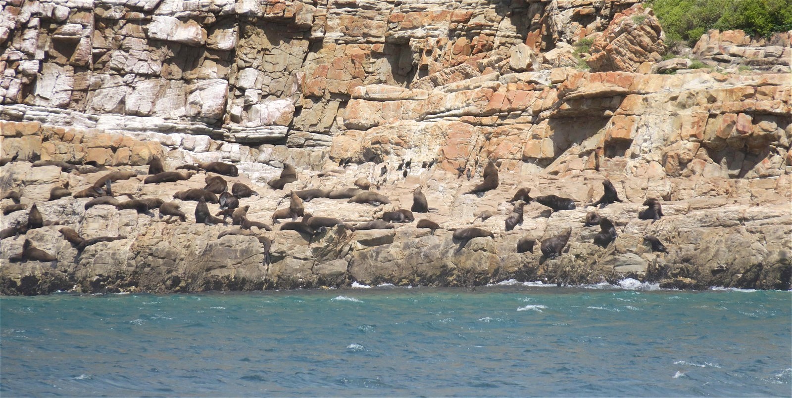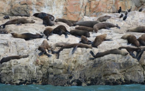 Des centaines d'otaries étalées sur tous les rochers au bord de l'eau