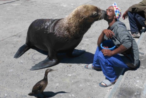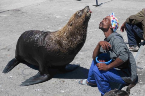 Un dégourdi fait du spectacle avec 1 otarie ... Et ça marche car il est sympa !