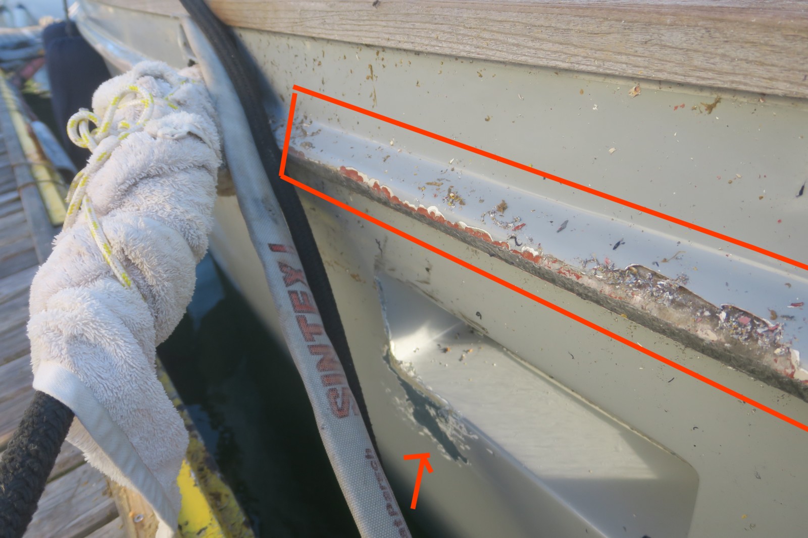 En se soulevant l'IPM jaune du ponton a frotté sur l'amarre ce qui l'a usée