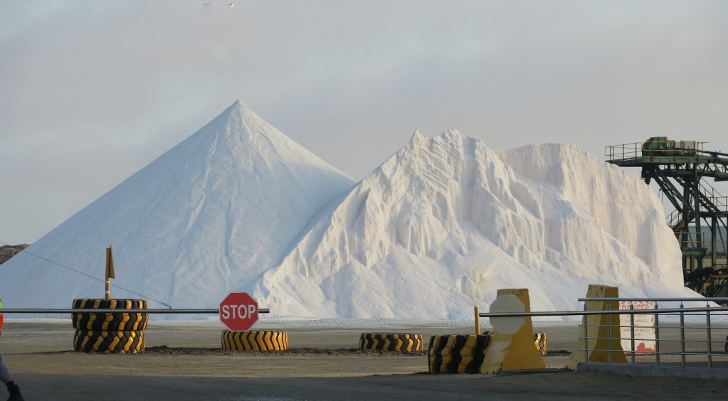 Puis nous retournons sur la péninsule de Walvis Bay pour voir le coucher du soleil Loupé ! Mais nous avons vu l'exploitation du sel ( içi est produit 90% du sel d'Afrique )