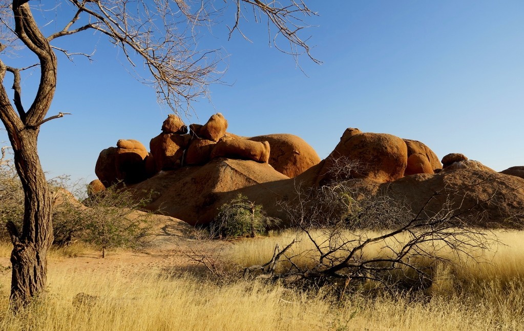 Direction le nord vers la région montagneuse du Spitzkoppe