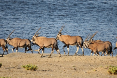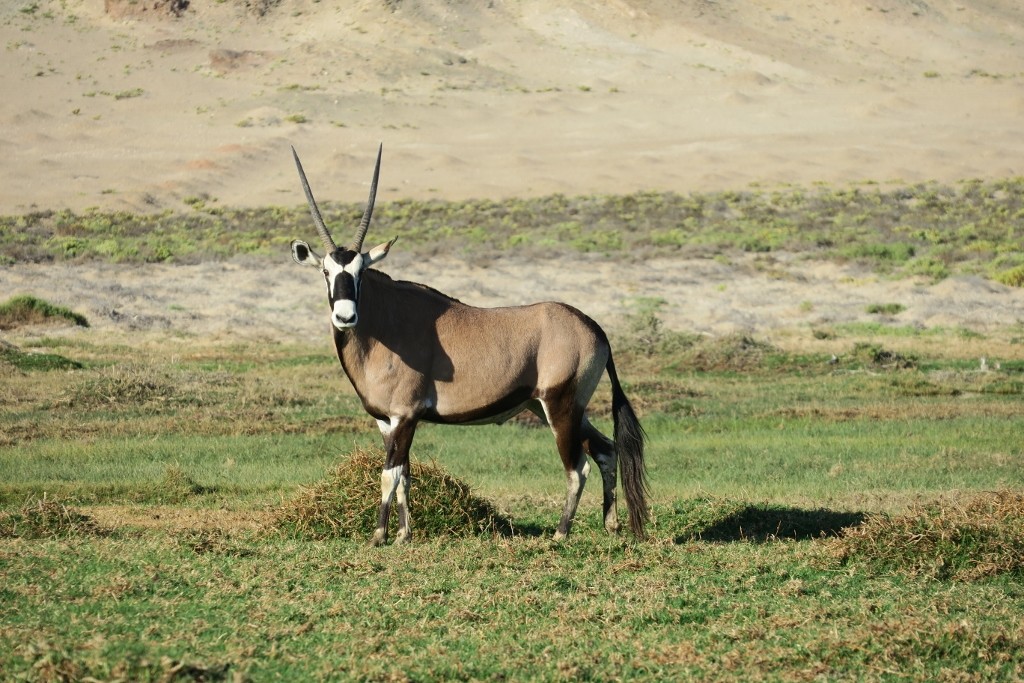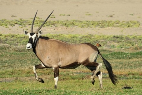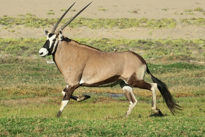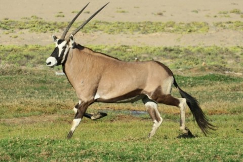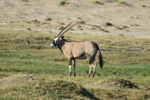 Un oryx C'est l'emblème de la Namibie mais il y en a aussi en Afrique du Sud c'est la seule gazelle qui peut tuer un lion ou un guépard grâce à ses longues cornes Mais la plus part du temps elles choisissent la fuite en bondissant