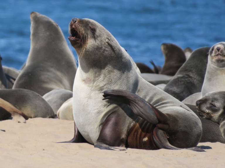 Ce sont des otaries à fourrure La Namibie dit qu'il y en a tellement qu'elles portent préjudice à la pèche Et elle autorise que l'on tue les bébés otaries pour la fourrure qui sont vendues en Chine et en Russie par 1 turc ( 60% du marché )qui vit en Australie ! Son usine de traitement des fourrures est en Turquie c'est cela la mondialisation pauvres otaries !