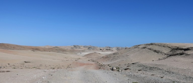 Vers 17 H , dans ce coin désertique , le doudou pose la question qui fâche ....!!!!! Ou allons nous dormir ? Au bout de cette route , un oasis et un super lodge ou nous étions seuls Le Goanikontes Oasis