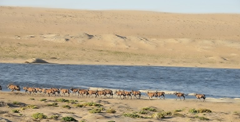 Et voila que nous voyons passer le troupeau de gazelles Elles se dirigent vers la plage pour la nuit , nous semble-t-il Il est 17H30